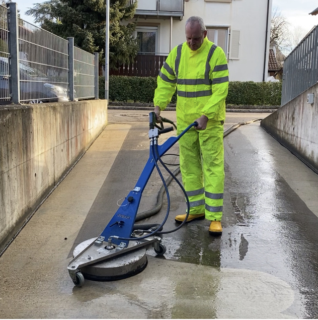 Das neue Flächenreinigungs-System mit bis zu 95 °C und bis zu 500 bar Arbeitsdruck hat eine integrierte Absaugung das ideale Werkzeug zur schnellen und effizienten Reinigung großer Flächen wie z.B. kommunaler Plätze, Industrie- und Hallenböden, Gebäude-Vorplätzen oder Hofeinfahrten.